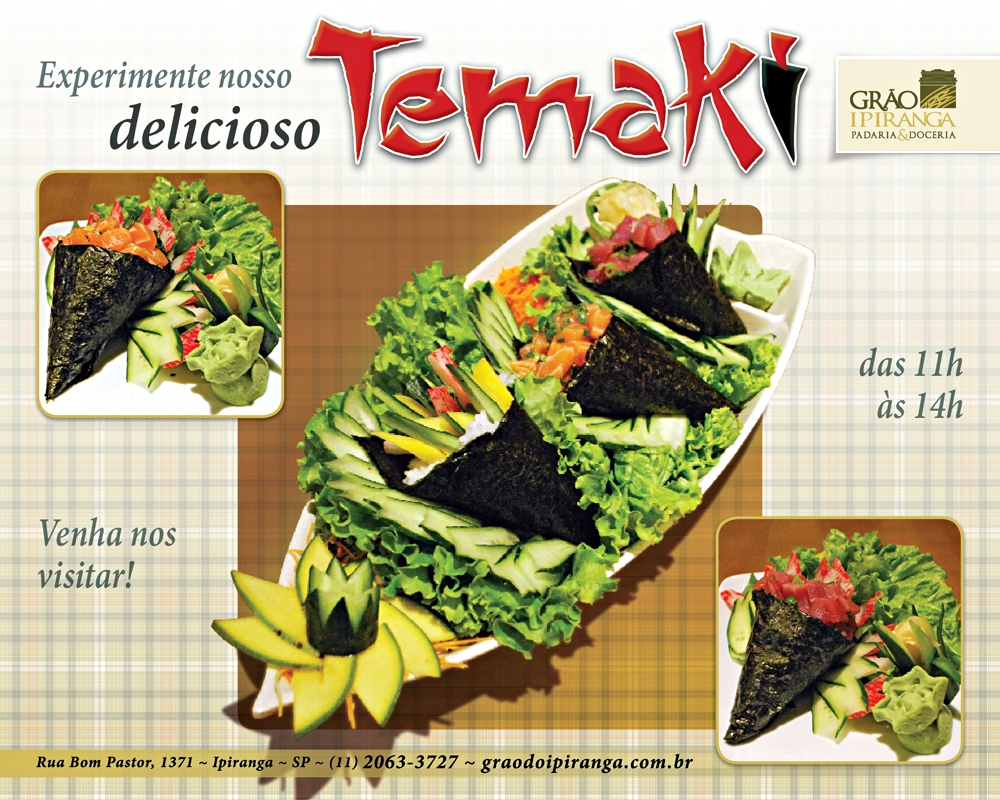 Produzidos com ingredientes frescos e de alta qualidade, os Temakis da Grão Independência estão disponíveis em nosso buffet diariamente das 11h às 14h. Venha experimentar esta delícia da culinária oriental!